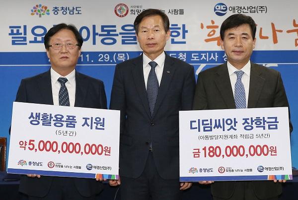 나소열 부지사는 “이웃을 위한 나눔이 날로 줄고 있는 상황에서 애경산업의 어려운 이웃을 위한 실천 약속은 다른 기업들의 귀감이 될 것으로 기대되며, 희망을 나누는 사람들의 지원은 사회적으로 도움이 필요한 아동들이 미래 꿈을 향해 나아갈 수 있는 디딤돌 역할을 하게 될 것”이라고 말했다.
