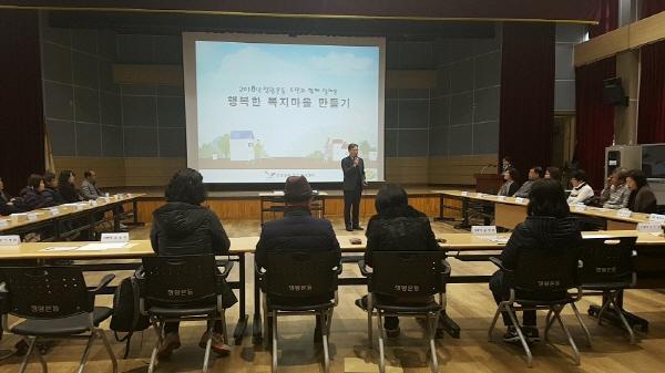 이날은 동네를 돌자! 결의대회, 추석명절 행복꾸러미 포장·전달 및 김장김치 전달 등 한 해 동안 한 해동안 온정드림단의 활동 결과를 공유했다. 이석현 정왕본동 동장은 실제 사례를 중심으로 복지사각지대 발굴의 중요성에 대해 강의하고 복지통장이 할 수 있는 일에 대한 실천 방안을 제시하기도 했다.