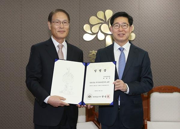 양승조 충남도지사는 30일 도청 접견실에서 이경석 신임 천안의료원장에게 임명장을 수여했다.