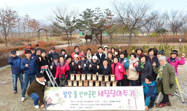 광주시 지속가능발전협의회는 지난 28일 천혜의 수변 생태환경을 자랑하는 남종면 팔당물안개공원에서 ‘새 집 달아주기’ 행사를 실시했다. ‘새 집 달아주기’ 행사는 자연환경보호와 생물다양성 증진을 위한 조류생물자원 보전 캠페인으로 이번 행사에는 광주시 지속가능발전협의회, 광주시 공무원 등 30여명이 참여해 인공둥지 30여개를 설치했다.