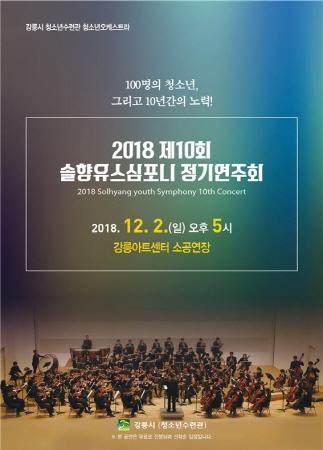 강릉시 청소년수련관은 오는 12월 2일 오후 5시 강릉아트센터 소공연장에서‘청소년들의 10년간의 노력!’이라는 주제로 “제10회 Solhyang Youth Symphony 정기연주회”를 개최한다.