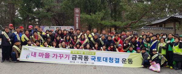 이번 국토대청결운동은 금곡동 주민자치위원회, 통장협의회 등 금곡동 사회단체회원과 주민, 공무원 등 약 100여명이 참여했다. 참여자들은 금곡동 일대를 총 3개 구역으로 나누어 일반도로와 마을 골목길 등 평소 손길이 미치기 어려운 구역을 중심으로 환경정화활동을 전개하고, 시가지 미관을 저해하는 전단지 제거, 버스정류장 쓰레기 등 생활쓰레기 수거 등으로 마을 환경을 재정비했다.