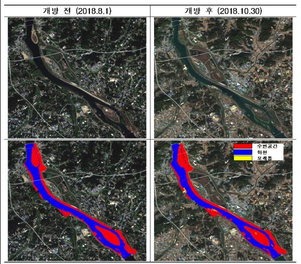 이번 개방으로 모래톱 0.086㎢이 새로 발생했으며, 수변공간은 9.8% 증가했다.