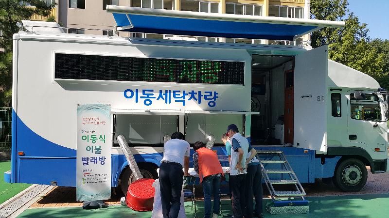이동식 이불빨래 사업’은 서울시 거주 중증장애인 및 독거어르신의 개인생활 위생환경 개선을 위하여 장애인복지관, 임대아파트, 재가노인센터, 종합사회복지관 등 세탁이 필요한 현장으로 이동식 이불빨래 차량이 달려가서 이불 등 대형 빨래 세탁을 지원하는 서비스다.