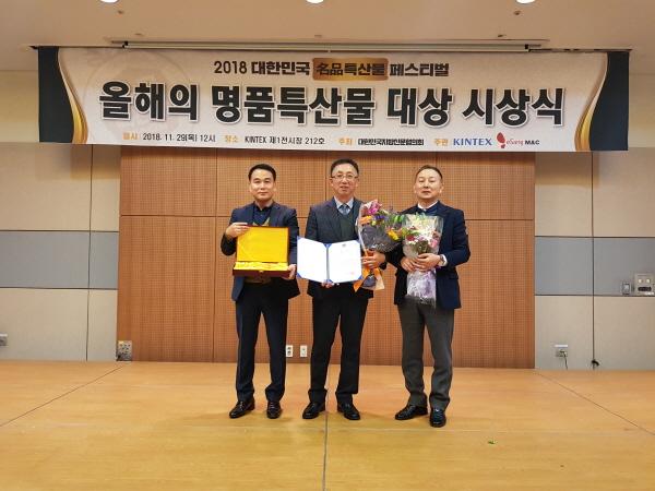 평택시 명품 슈퍼오닝 농특산물이 지난 29일 2018년 대한민국 명품특산물 페스티벌에서 울해의 품질만족 부문 ‘대상’을 수상했다.