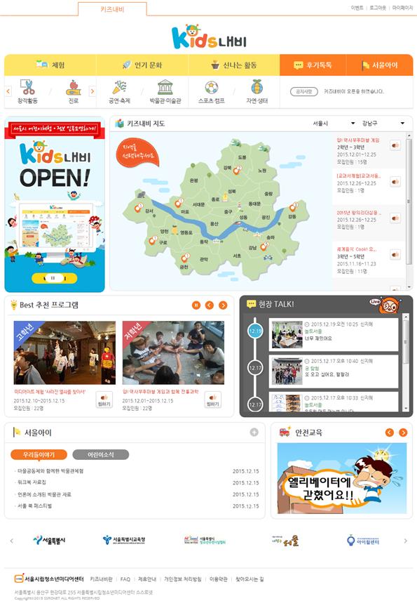이에 앞서 서울시가 ’08년부터 운영 중인 ‘유스내비(http://www.youthnavi.net)’가 청소년 대상 체험프로그램을 안내했다면 ‘키즈내비’는 어린이 대상 체험프로그램을 안내하는 패밀리사이트라고 할 수 있다.