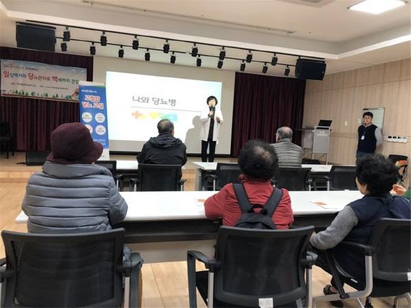 이번 교육은 ‘일상에서의 당뇨관리로 백세까지 건강히’의 일환으로 프로그램 참여자를 비롯한 지역주민들을 대상으로 이뤄졌으며 당뇨병에 대한 이해, 당뇨관리를 위한 운동법, 영양교육까지 3회기에 걸쳐 진행됐다.