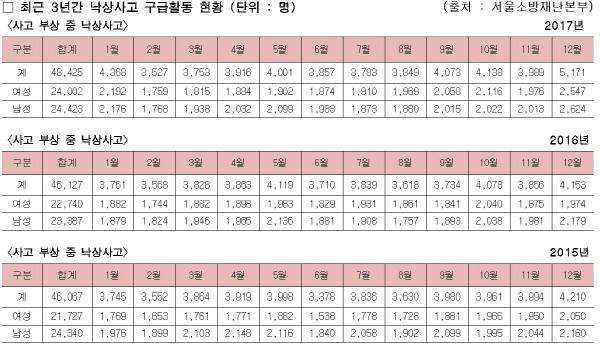 서울시 소방재난본부 관계자는 “노약자의 경우 겨울철 낙상사고를 당하면 큰 위험에 처할 수 있기 때문에 건강관리에 각별한 주의”를 당부했다.