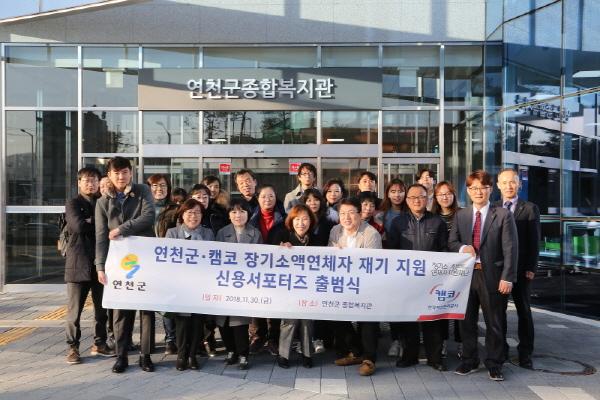 연천군과 캠코는 지난 11월 30일 오후 3시 연천군 종합복지관에서 캠코 정해원 서울서부지역본부장, 연천군 사회복지담당 공무원, 복지상담사 등 40여명이 참석한 가운데 "장기소액연체자 지원제도 설명회 및 신용서포터즈 출범식"을 개최했다.