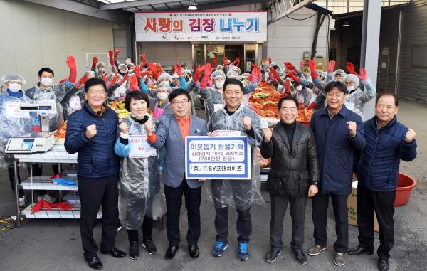 광주시 오포읍에 소재한 ㈜SY프랜차이즈 김성윤 대표는 지난 1일 직원들과 함께 ‘사랑의 김장나눔 행사’를 개최해 김장김치 200박스를 광주시에 전달했다.