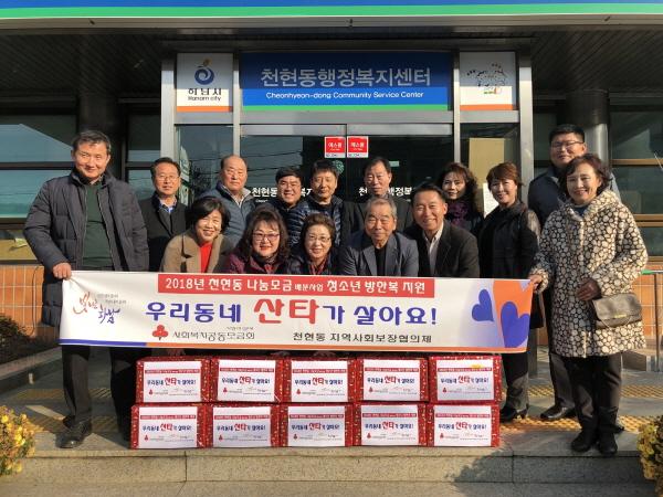 이번 사업은 다가오는 연말연시와 크리스마스를 맞아 경제적 위화감을 느낄 수 있는 소외계층의 청소년을 지원하고자 마련됐다. 경기공동모금회 천현동나눔모금 지정기탁금 3백만원을 배분받아 저소득 한부모 가정과 다문화 가정 청소년 11명에게 선호하는 브랜드의 방한복을 지원했다.