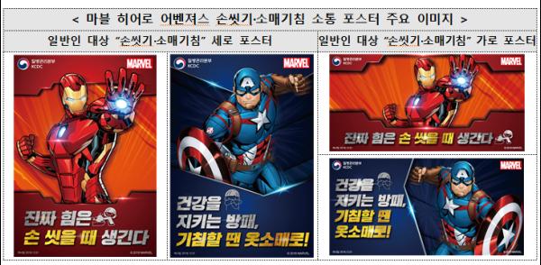 질병관리본부 정은경 본부장은 “손씻기와 소매기침은 많은 질병을 예방할 수 있는 유익한 생활 속 습관인 만큼, 국민 개개인이 예방수칙을 잘 익혀 실천해 나가는 것이 중요하다”며, “전 세계적으로 사랑 받는 마블 히어로 어벤져스와 질병관리본부가 함께, 건강습관 실천 캠페인에 나선 것 자체에 큰 의미가 있다”면서, “앞으로도 질병관리본부는 국민의 눈높이에 맞게, 보다 창의적이고 공감할 수 있는 이야기를 담아 국민들의 질병예방과 건강증진에 기여할 수 있도록 최선의 노력을 다하겠다”고 밝혔다.