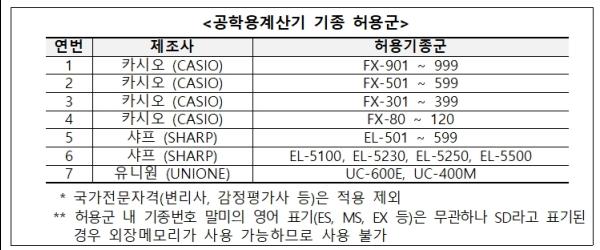 공학용계산기 사용 규정도 변경된다.