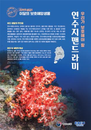 해양수산부는 12월의 보호해양생물로 꽃처럼 화려한 모습을 지닌 연산호 ‘연수지맨드라미’를 선정했다.