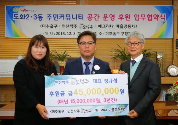 인천 미추홀구는 3일 도화2·3동 주민 커뮤니티 공간 운영 후원 업무협약과 후원금 전달식을 개최했다.
