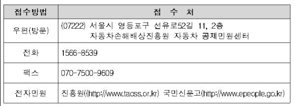 이에 따라, 공제에 가입한 사업용 차량의 운행으로 인해 사고 피해를 입은 피해자가 공제조합의 보상 등과 관련하여 문의사항이 있을 경우에는 아래의 방법으로 진흥원에 관련 민원을 접수하면 빠르고 편리하게 안내를 받을 수 있다.