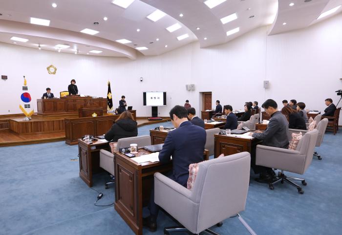 방미숙 의장은 개회사를 통해 “내년에도 경기침체가 예상되는 만큼 민생안정과 일자리 창출, 서민생활 안정에 중점을 두고 선심성, 중복사업 등 불요불급한 예산은 없는지 꼼꼼히 살펴 재정의 건전성이 확보될 수 있도록 노력해 주실 것”을 동료 의원들에게 당부했다.