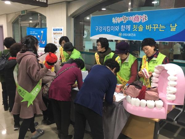 이날 행사에서는 구강 전문 봉사단 덴티맘이 함께 참석하여 구리 여성노인회관 로비에서 칫솔을 나누어 주며 딱딱하고 지루할 수 있는 교육 내용을 신나는 율동과 구강 건강 노래를 함께 부르면서 즐거운 분위기 속에서 진행했다. 특히 행사에 참여한 시민들에게 잘못된 칫솔 보관을 통한 교차 감염의 위험성과 노년기 구강 건조증 예방을 위한 ‘입 체조’ 등을 추가로 알려주어 올바른 구강 건강 습관 형성에 실질적인 도움이 되었을 것이라는 평가를 받았다.