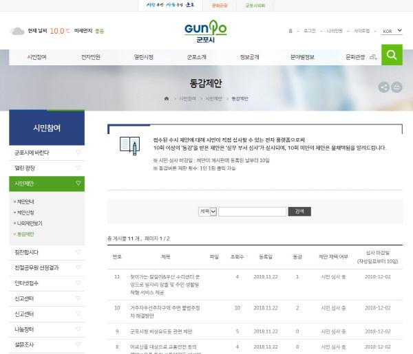 시의 의하면 ‘동감제안’ 제도는 ‘시민 우선 사람 중심’이라는 민선 7기 시정 철학이 반영된 것으로, 국민신문고 홈페이지를 통해 접수된 행정 발전 및 각종 제도 개선·개혁을 위한 제안을 군포시민이 우선적으로 평가하는 절차다.