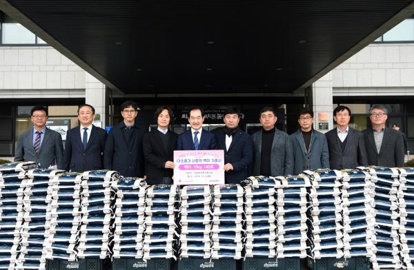 의정부지역건축사회는 4일 시청을 방문하여 의정부시 범시민 이웃사랑 나눔 캠페인 ‘100일간 사랑릴레이 배턴잇기 운동’에 동참하고자 백미 10kg 140포를 기증했다.