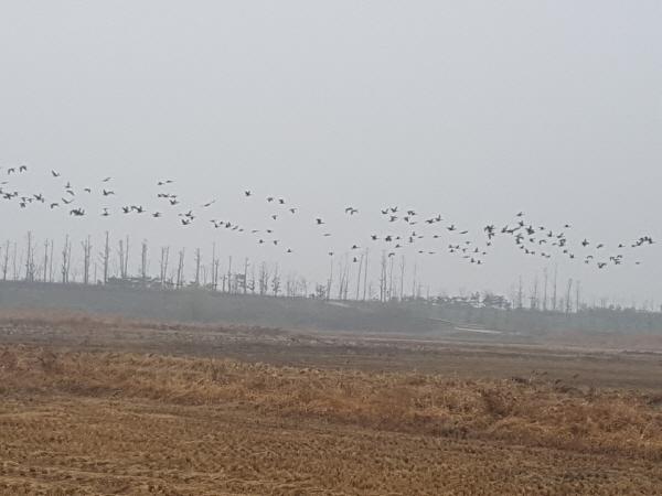 쇠기러기는 9월 하순경부터 4월 초순까지 유럽중부, 중국, 한국 일본에서 겨울을 나는 철새로 지난 10월 낱알들녘 가을걷이 시기부터 선발대가 날아들기 시작하여 본격적으로 먹이주기를 시작한 11월 20일을 기점으로 약 500~700개체가 떼를 지어 먹이 활동을 시작했다.