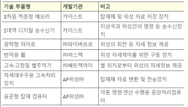 또한, 국내 대학 및 산업체가 개발한 7개 핵심기술에 대해우주환경에서의 성능을 검증함으로써 향후 우주기술 국산화 및 자립화에도 크게 기여할 것으로 예상된다.