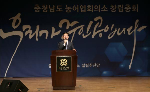 양승조 지사와 유병국 도의회 의장, 도내 농어업인 단체 대표와 회원 등 700여명이 참석한 가운데 열린 이날 행사는 설립 경과보고, 창립총회 등의 순으로 진행됐다.