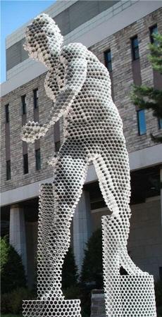 성남시청 앞 잔디광장에 파이프로 만든 이색조형물 ‘다비드’가 5일 설치됐다. 성남시는 ‘파이프 조각가’로 널리 알려진 이철희 작가가 4억원 상당의 작품을 1년간 지정 기탁하기로 해 이곳에 전시했다.