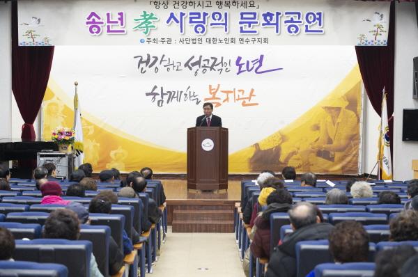 사)대한노인회 연수구지회는 지난 4일 연수구노인복지관에서 연말을 맞아 지역 어르신들께 감사의 마음을 전하고자 ‘2018년 송년 孝 사랑의 문화공연’을개최했다.