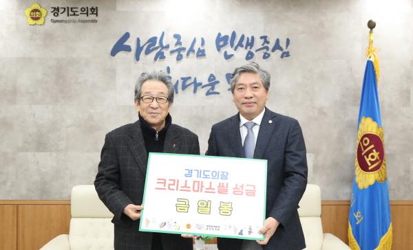 송한준 의장은 이날 오전 11시 경기도의회 의장 접견실에서 우제찬 대한결핵협회 경기도지부 지회장으로부터 크리스마스 씰 50매를 증정 받고 성금봉투를 건넸다.