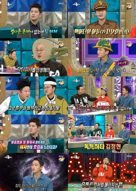 ‘라디오스타’에 입담 터진 문법 경찰 장기하부터 패기의 신입 햇병아리 김정현 아나운서까지 신선한 조합의 토크 군단이 예측불허하고 믿기지 않는 입담과 재미로 수요일 밤을 휘어잡았다. 특히 입사 6개월 차 햇병아리 김정현 아나운서가 만들어낸 토크 카오스가 절정을 이루자 어안이 벙벙해진 세 명의 게스트와 4MC들은 그를 다독거리는 등 빅 웃음을 완성, 시청자들을 배꼽 잡게 했다.
