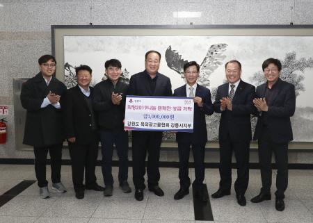 강원도 옥외광고물협회 강릉시지부 임원들은 지난 5일 강원 사회복지공동모금회를 통해 희망2019 나눔캠페인 성금 100만원을 김한근 강릉시장에게 기탁했다.
