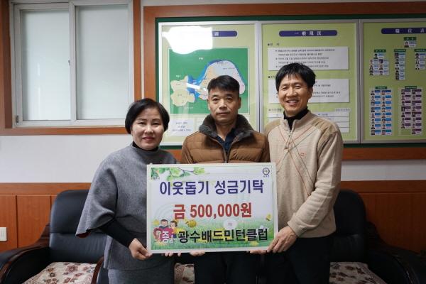 광주시 광수배드민턴클럽은 지난 5일 남종면사무소를 방문, 어려운 이웃을 위해 써달라며 자선경매 수익금 50만원을 남종면 지역사회보장협의체에 기탁했다.