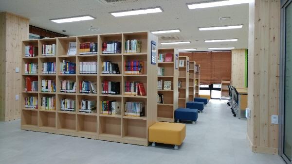 또 유아들을 위한 유아방은 바닥난방에 유아테이블, 유아캐릭터 장식 등으로 꾸며져 있어 가정에서 책을 읽는 것 같은 편안한 분위기를 조성했다. 창가 햇볕이 잘 드는 창가 한 면에는 테이블을 설치해 노트북을 사용할 수 있도록 했다.