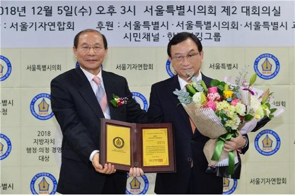 ‘2018 지방자치 의정대상’ 시상식은 서울기자연합회가 대한민국 지방자치 행정·의정·경영 부문의 경쟁력을 평가, 점검해 시민들에게 올바른 기준을 제시하고 건전한 정치문화 발전을 도모하기 위해 개최됐다. 각 부문 수상자들은 전문가들의 추천과 공적심사위원회의 엄격한 심사를 거쳐 선정됐다.
