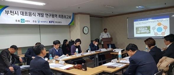 부천시는 지난 3일 여성인력개발센터에서 부천시 외식업소 육성위원회, 외식업지부, 공무원 등 30여 명이 참석한 가운데 ‘음식관광 및 지역상생을 위한 먹거리 개발 용역’ 최종보고회를 개최했다. 이날 보고회는 용역을 맡은 장안대학교 송흥규 외식조리학과 교수의 대표음식 개발 연구용역 결과보고와 축제를 활용한 홍보방안 발표, 질의응답, 대표음식 시식과 품평 순으로 진행됐다.