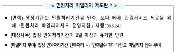 행안부, 6일 전국 지자체 대상, 민원처리 마일리지제 운영현황 조사결과 발표