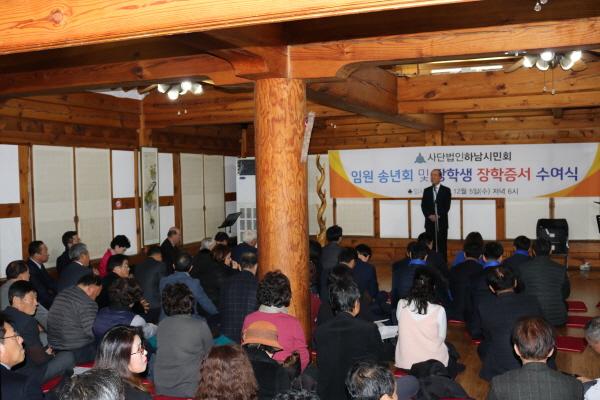 하남시민회는 지난 5일 관내 한 음식점에서 2018년 임원 송년회 및 장학생 장학증서 수여식 행사를 개최했다.