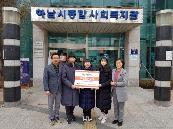 경기도 하남시 하남초등학교에서 지난 5일 저소득가정 지원을 위한 후원금 전달식을 하남시종합사회복지관에서 진행했다고 밝혔다.