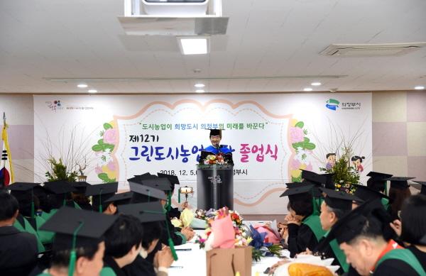 의정부시 도시농업기술과는 지난 5일 안병용 시장과 교육 수료생 등 100여 명이 참석한 가운데 제12기 그린도시농업대학 졸업식을 개최했다.
