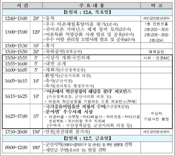 전북 군산에서 어촌발전 성과 및 정보 교류, 시상식 등 진행
