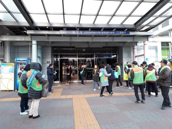 시흥시 동자율방재단은 지난 5일 정왕역 일대에서 동절기 화재예방 캠페인을 진행했다.