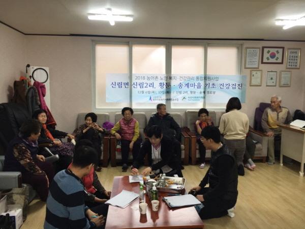 농어촌 노인 복지·건강관리 통합지원사업의 일환으로 노인 대상 피검사, 콜레스테롤, 혈당 및 혈압검사 등의 검진을 실시하고, 겨울철 건강관리법을 안내했다.