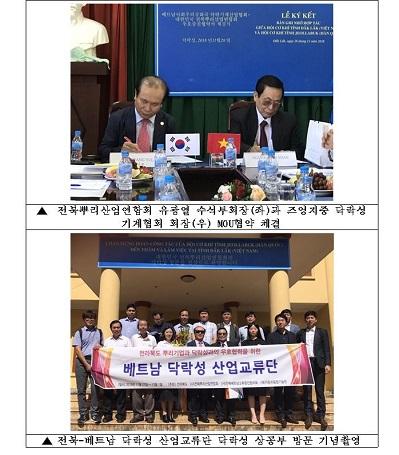 이번 MOU체결은 전북도내 뿌리기업 기술인력의 안정적 공급과 양국 기계기업간 무역활성화 기반을 마련하기 위해 전북도와 자동차융합기술원, 뿌리산업연합회, 전북베트남우호교류증진협의회, 닥락성 인민위원회, 닥락성 기계협회, 유관기관이 협력하여 성사됐다.