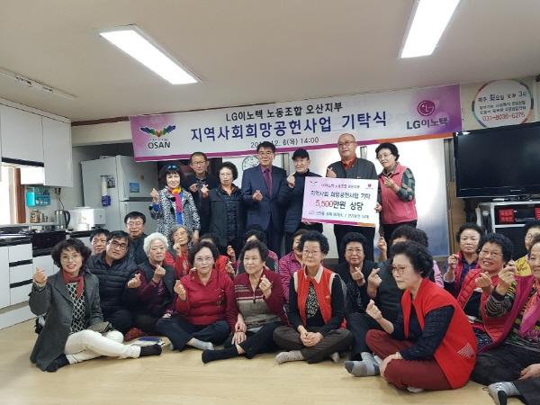 오산시 누읍동에 소재한 기업체 LG이노텍 노동조합은 지난 6일에 남촌동 경로당에서 남촌동 일원 거리에 LED조명 교체보급을 위한 "지역사회희망공헌사업 기탁식"을 가졌다.
