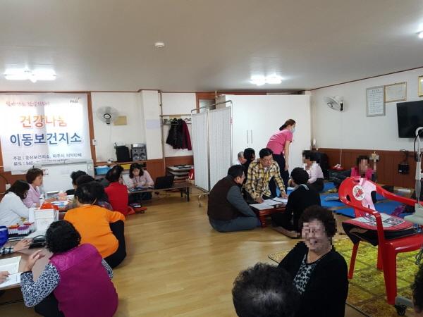 파주시 문산보건지소는 매월 1·3주 목요일 오후에 관내 의료기관 봉사자와 함께 건강나눔 이동보건지소를 운영하고 있다.