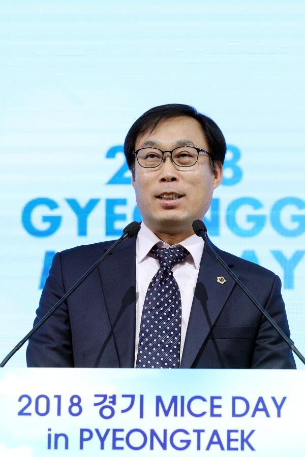 이날 김달수 위원장은 축사를 통하여 ‘세계경제의 불확실성 심화로 새로운 전략산업이 필요하며, 경기도는 지역장점을 살려 고부가가치를 창출할 성장동력으로 마이스산업을 육성하고 있음’을 강조하고, ‘평택시 마이스 비전선포’를 축하했다.