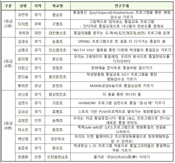 ‘제6회 학교통일교육 연구대회’ 입상작 선정