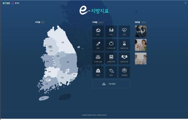2008년에 서비스를 시작한 "e-지방지표"는 지역의 발전상황을 파악하고 과학적 지역정책수립을 위해 필요한 200여개 지표를 인구, 건강, 교육, 환경 등 12개 분야로 분류하여 시도 또는 시군구 단위로 제공하고 있다. 매년 이용자가 늘어 올해 처음으로 이용건수가 110만 건을 넘어설 것으로 예상돼, 대표적 지역통계포털로 자리매김하고 있다.