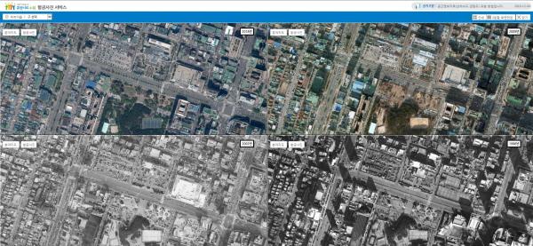 연도별 수원지역 항공사진은 2분할과 4분할로 제공한다. 항공사진을 촬영하기 시작한 1947년부터 정보를 제공해, 수원의 과거와 현재 도시 모습을 시계열 모양으로 비교해 볼 수도 있다.